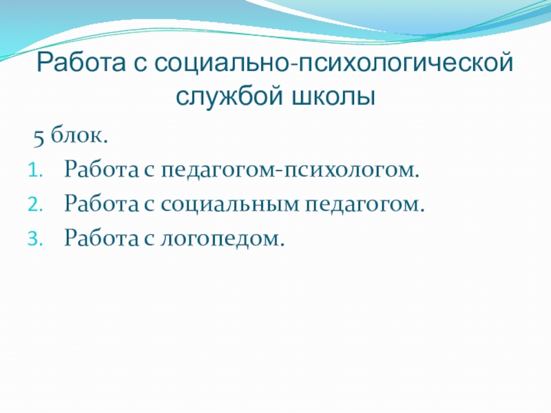 Слайд 10Работа с социально-психологической службой школы