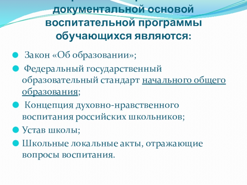 Слайд 2Нормативно-правовой и документальной основой воспитательной программы обучающихся являются: