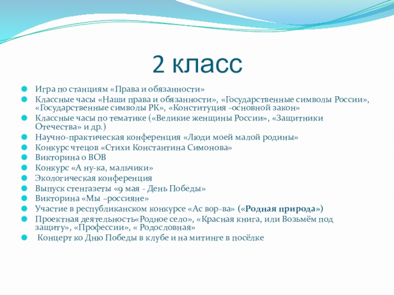 обязанности», «Государственные символы России», «Государственные символы РК», «Конституция -основной закон»