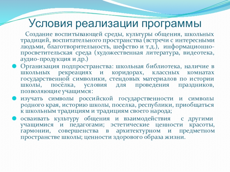 Слайд 12Условия реализации программы