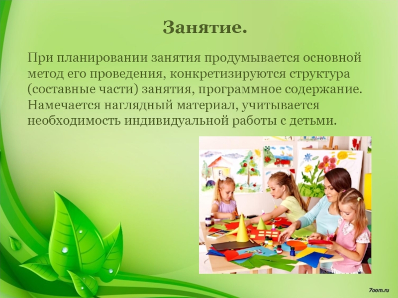 При планировании занятия продумывается основной метод его проведения, конкретизируются структура