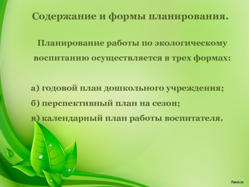 Планирование работы по экологическому воспитанию осуществляется в трех