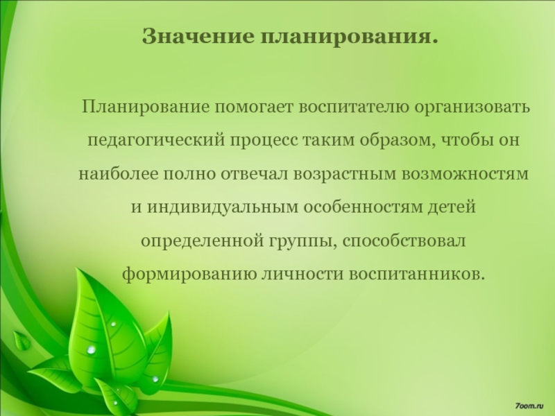 Планирование помогает воспитателю организовать педагогический процесс таким образом, чтобы он