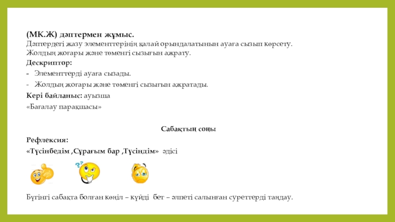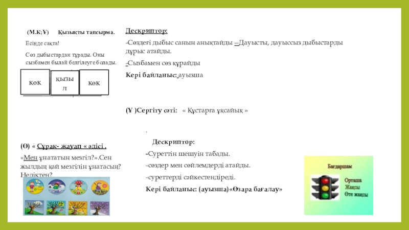 Барлық оқушылар: дауысты, дауыссыз дыбыстарды атау.