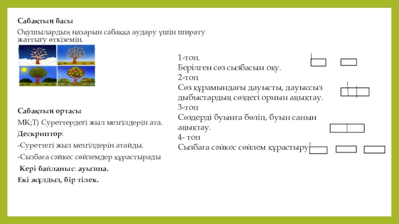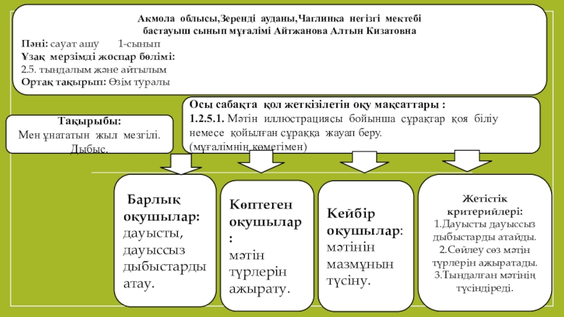 Тақырыбы: Мен ұнататын жыл мезгілі. Дыбыс.