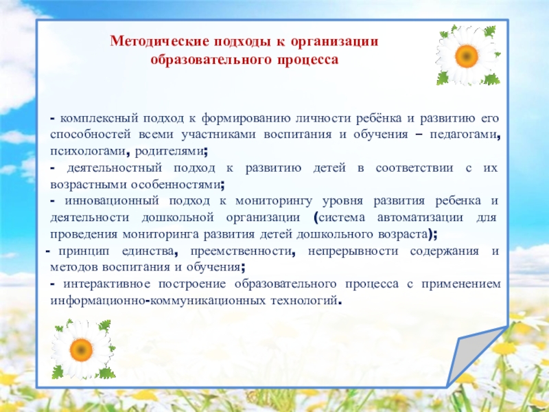 применению инновационных методик и технологий для интеллектуального, социального и личностного развития ребенка;
