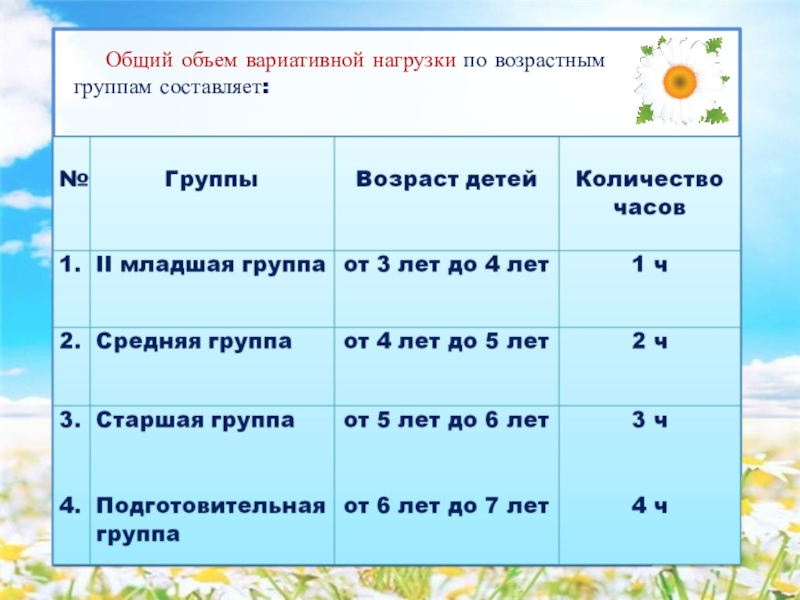Слайд 13Общий объем вариативной нагрузки по возрастным группам составляет: