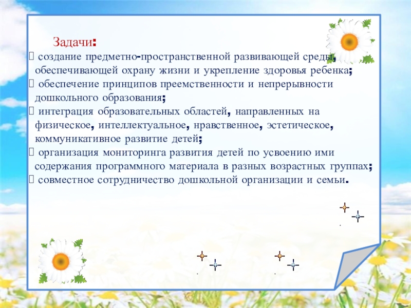обеспечение принципов преемственности и непрерывности дошкольного образования;