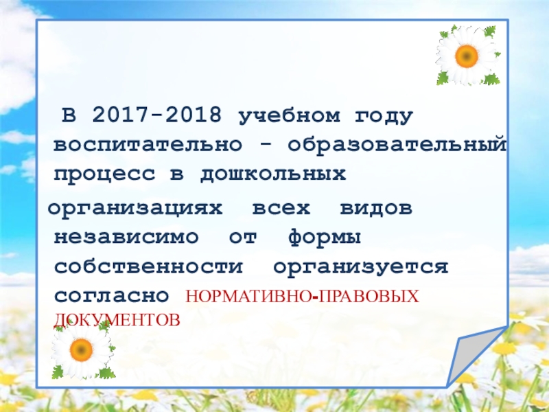 Слайд 2 В 2017-2018 учебном году воспитательно - образовательный процесс в дошкольных