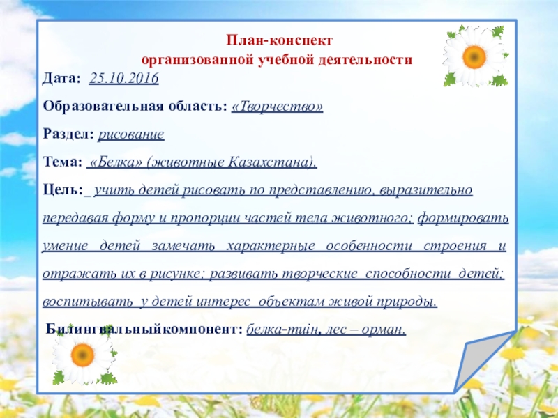Билингвальныйкомпонент: белка-тиін, лес – орман.