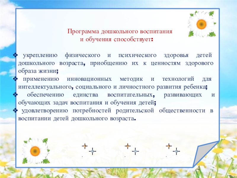 и психического здоровья детей дошкольного возраста, приобщению их к ценностям здорового образа жизни;