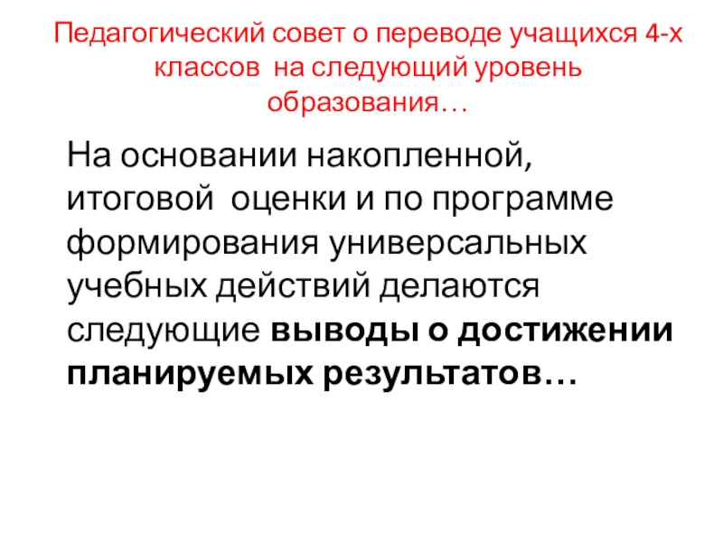Слайд 18Педагогический совет о переводе учащихся 4-х классов на следующий уровень образования…