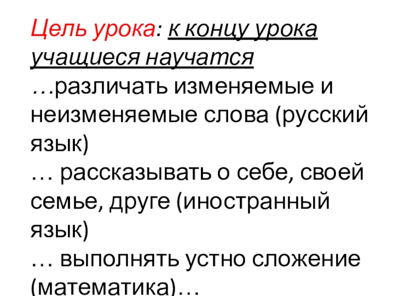 Слайд 2Цель урока: к концу урока учащиеся научатся