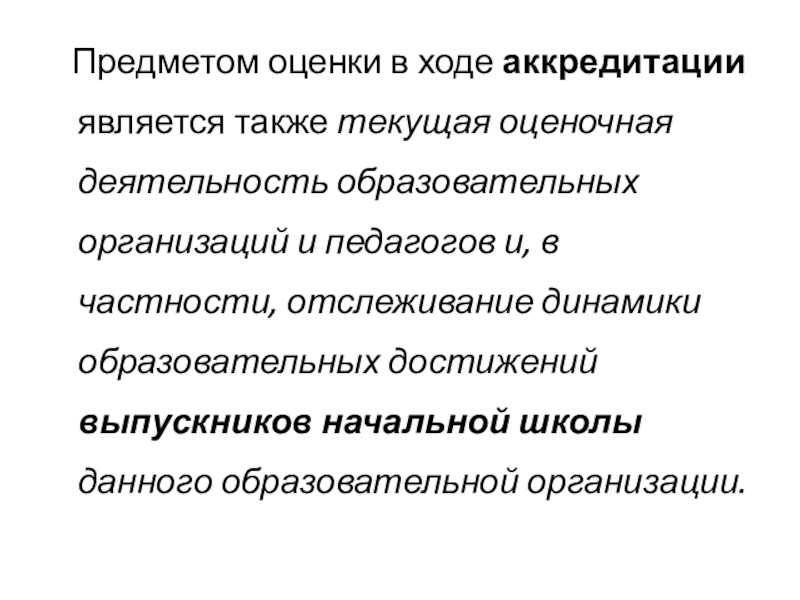 Слайд 26 Предметом оценки в ходе аккредитации является также текущая оценочная