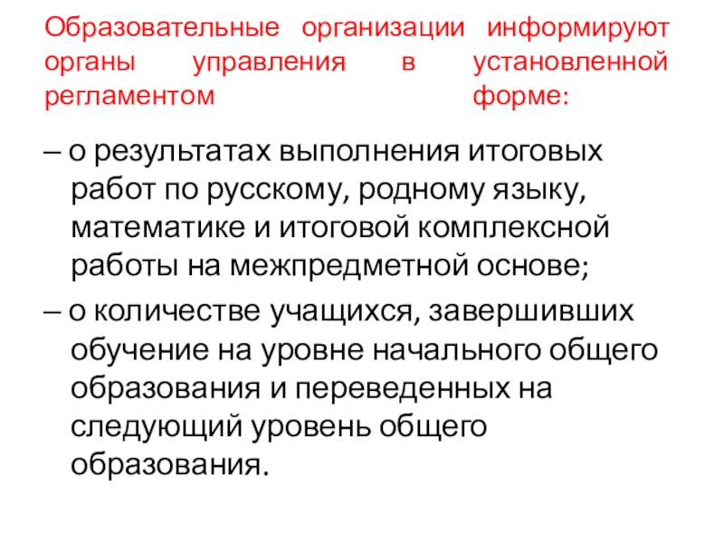 Слайд 24Образовательные организации информируют органы управления в установленной регламентом форме: