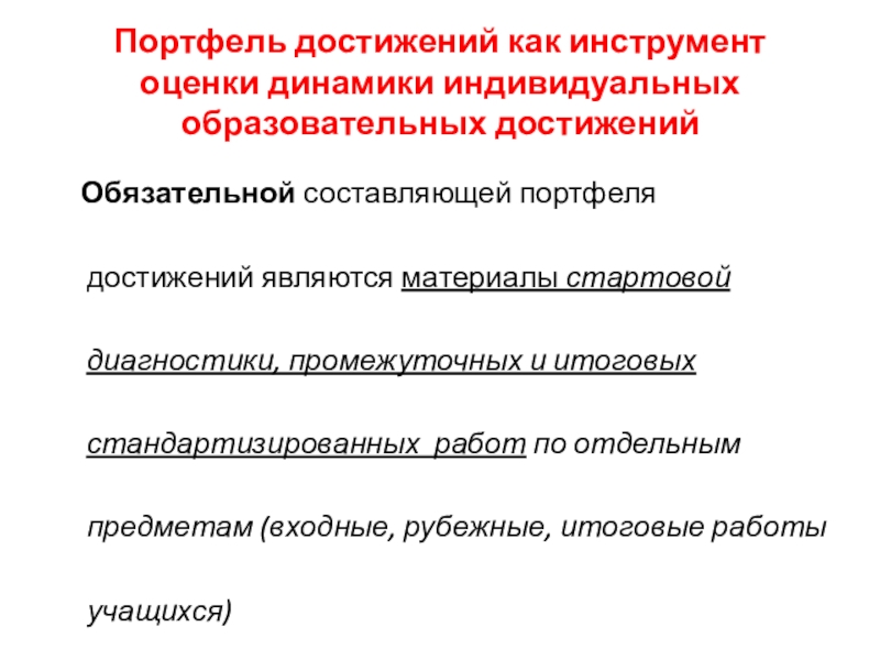 Слайд 14Портфель достижений как инструмент оценки динамики индивидуальных образовательных достижений