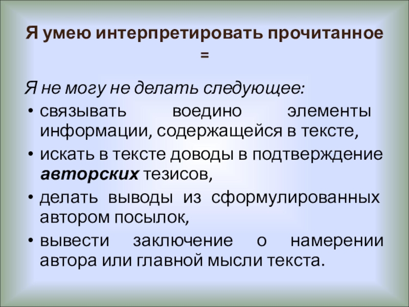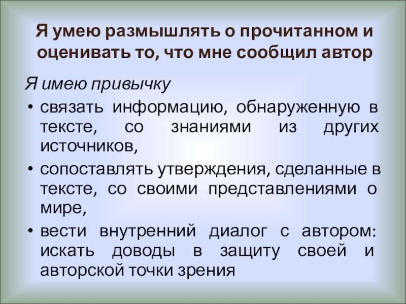 Слайд 45Я умею размышлять о прочитанном и оценивать то, что мне сообщил