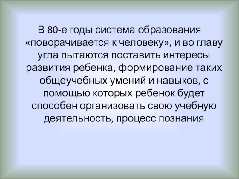 Слайд 52В 80-е годы система образования «поворачивается к человеку», и во главу