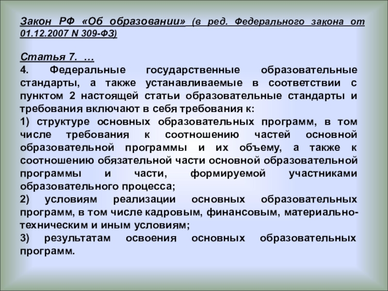 Закон РФ «Об образовании» (в ред. Федерального закона от 01.12.2007 N 309-ФЗ)
