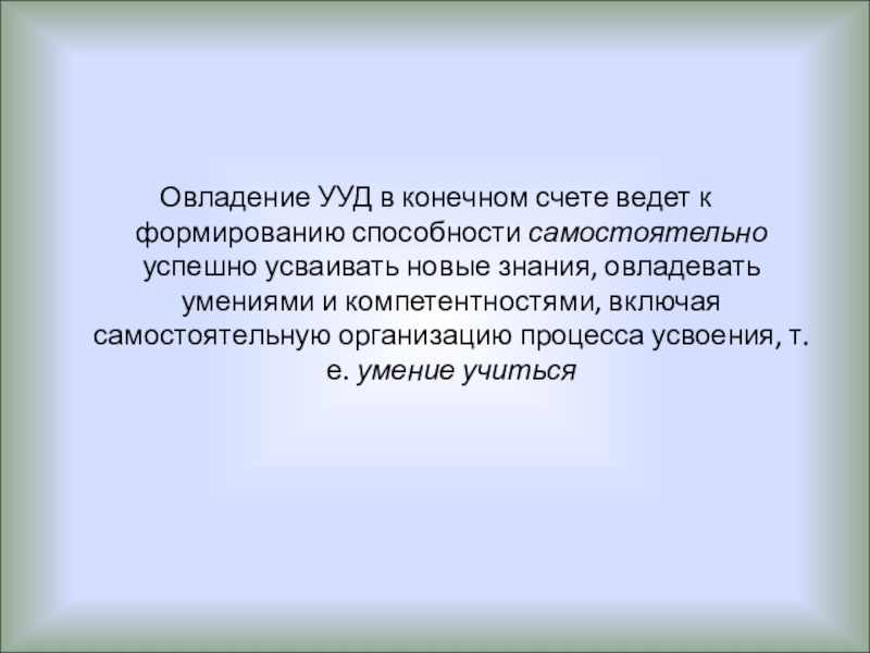 Слайд 69Овладение УУД в конечном счете ведет к формированию способности самостоятельно успешно
