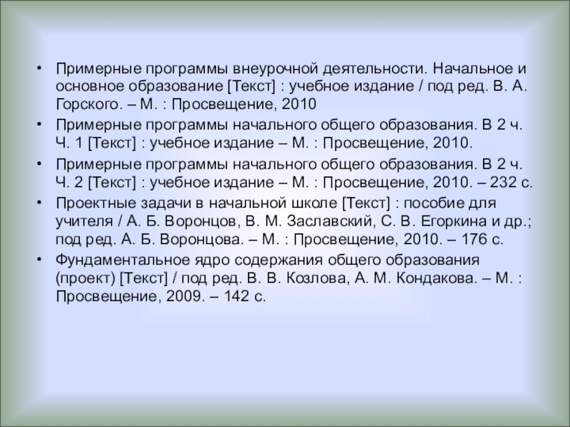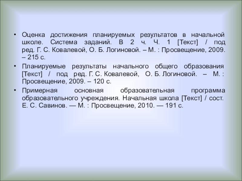 9) система оценки достижения планируемых результатов освоения основной образовательной программы начального общего образования.