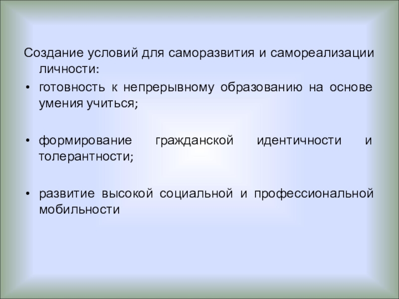 Слайд 60Создание условий для саморазвития и самореализации личности: