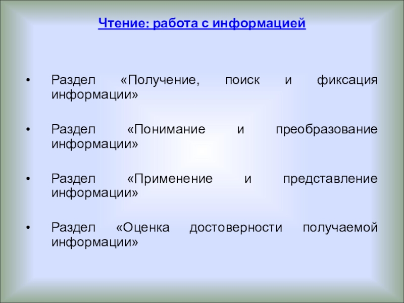 Планируемые результаты освоения программы по работе с информацией «Чтение: работа с информацией».