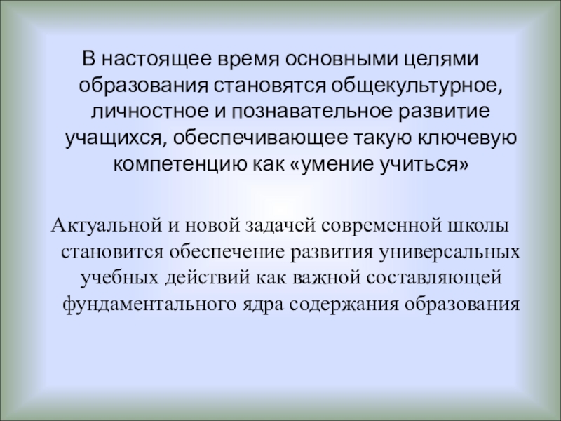 Слайд 56В настоящее время основными целями образования становятся общекультурное, личностное и познавательное