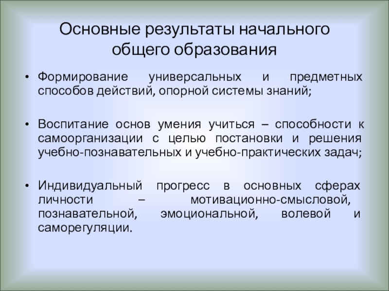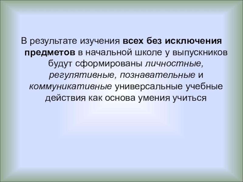 Слайд 50В результате изучения всех без исключения предметов в начальной школе у