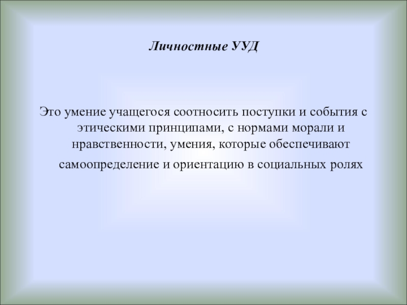 принципами, с нормами морали и нравственности, умения, которые обеспечивают самоопределение и ориентацию в социальных ролях