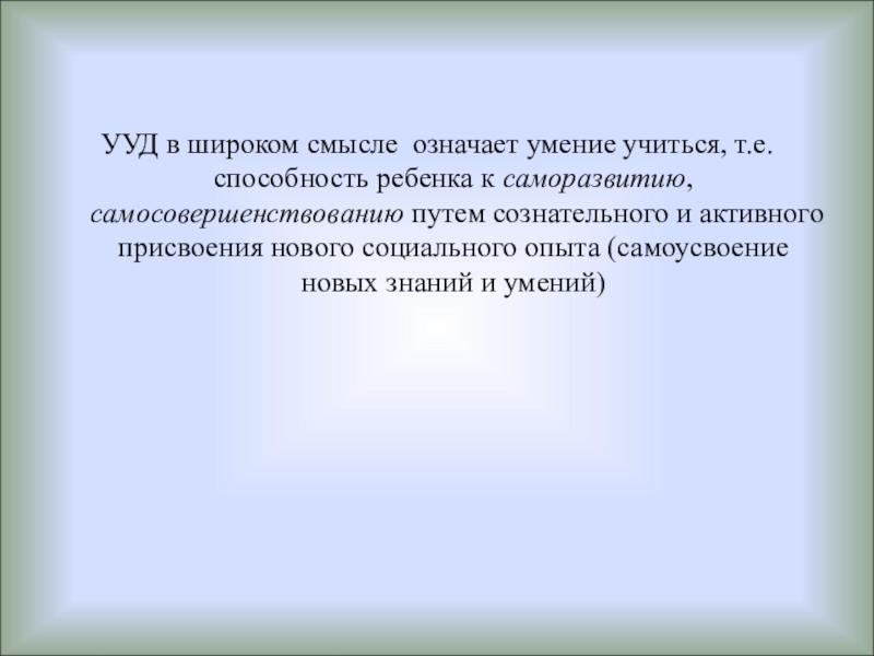 Слайд 58УУД в широком смысле означает умение учиться, т.е. способность ребенка к