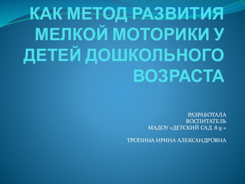 МАДОУ «ДЕТСКИЙ САД 8 9 »