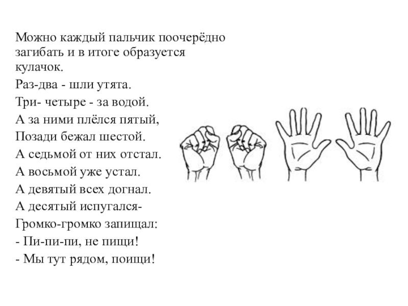 Слайд 7Можно каждый пальчик поочерёдно загибать и в итоге образуется кулачок.