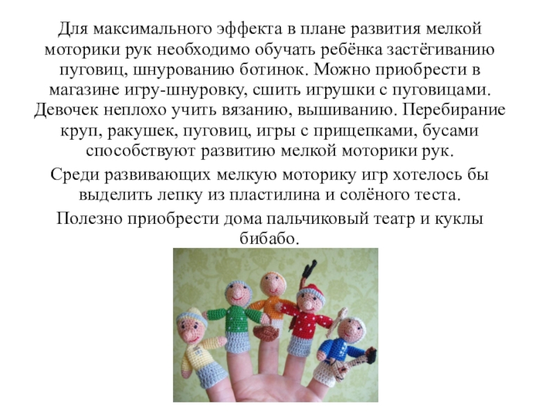 Слайд 13Для максимального эффекта в плане развития мелкой моторики рук необходимо обучать