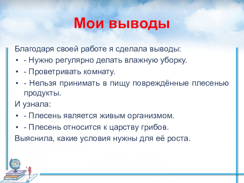 художественной литературой и Интернет-ресурсами, посмотрела фильм о плесени.