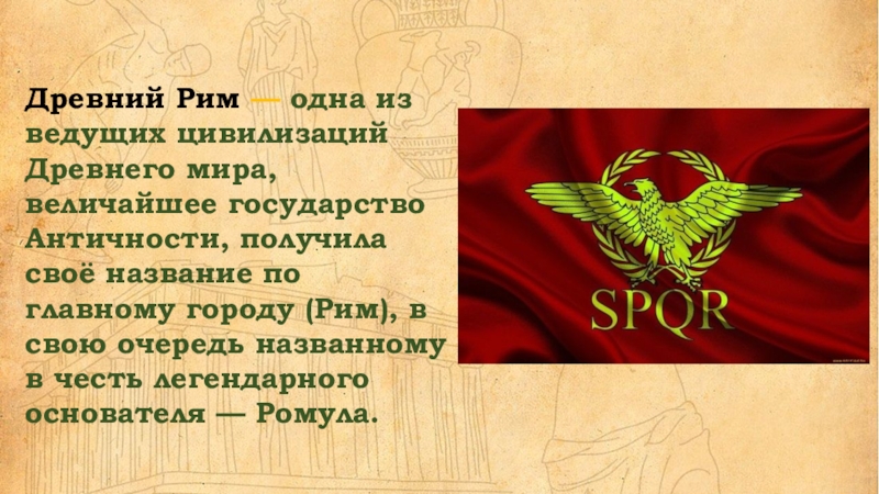 Слайд 2Древний Рим — одна из ведущих цивилизаций Древнего мира, величайшее государство
