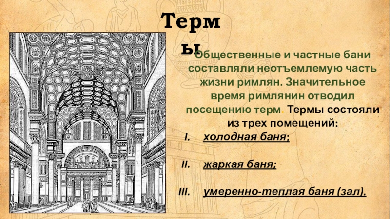 римлянин отводил посещению терм. Термы состояли из трех помещений: