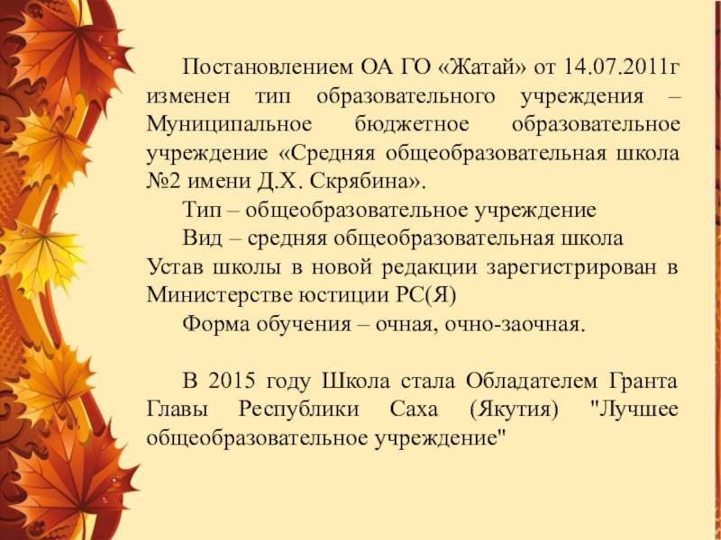 В 2011 году проходила официальная церемония присвоения имени Д.Х.Скрябина.