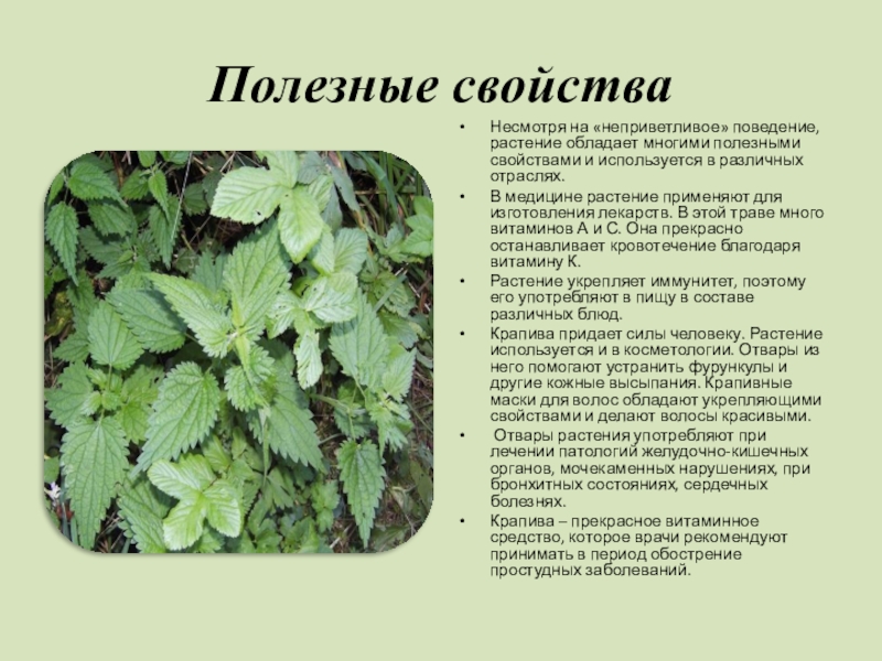 Слайд 12 Поистине уникальна трава крапива. Применение, к примеру, она все чаще