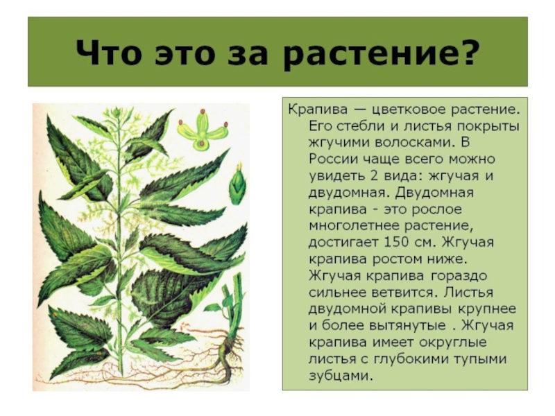 Изучить растение крапива (характеристика, места обитания,