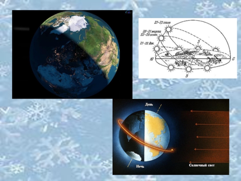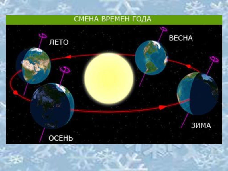 Дело в том, что Земля, помимо обращения вокруг Солнца, вращается вокруг воображаемой оси (линии, проходящей через Северный и Южный полюса). Если бы ось Земли располагалась под прямым углом к орбите Земли вокруг Солнца, у нас не было бы времен года, а все дни были бы одинаковыми. Но эта ось наклонена по отношению к Солнцу (на 23°27'). В результате Земля вращается вокруг Солнца в наклонном положении. Это положение сохраняется круглый год, а ось Земли всегда направлена в одну точку — на Полярную звезду.
