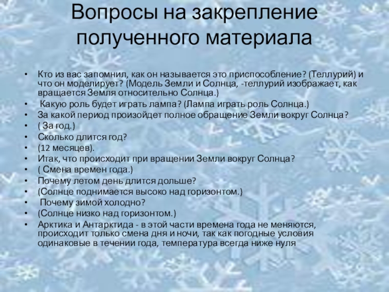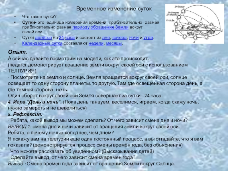 Я покажу вам на теллурии ещё один постоянный процесс, а вы отгадайте, что я вам показала? (демонстрируется процесс смены времён года, без объяснения)