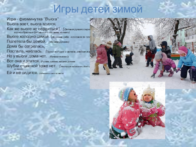 Подвижные игры для детей на свежем воздухе зимой. Метелица.