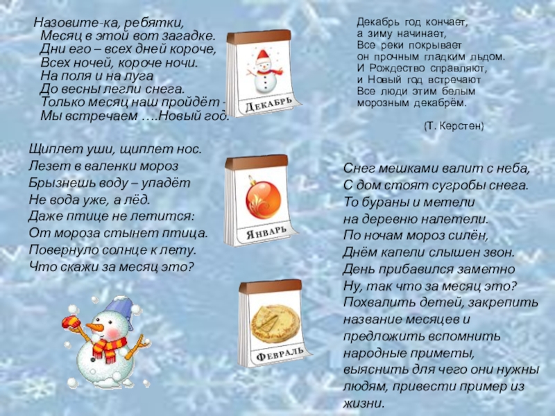 Какие месяцы зимы вы запомнили? (декабрь, январь, февраль)