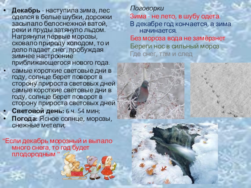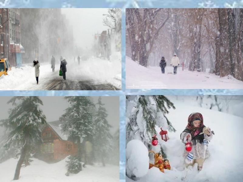 Давайте вспомним, какие явления зимней природы мы знаем? (Оттепель, гололедица, снегопад, метель, изморозь, мороз, пурга)