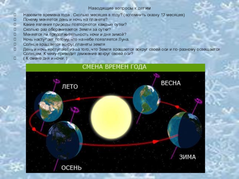 Показать детям, что движение Земли вокруг Солнца - причина смены времен года на планете;