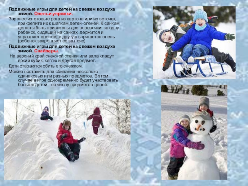 Слайд 35Подвижные игры для детей на свежем воздухе зимой. Оленьи упряжки.