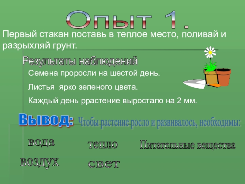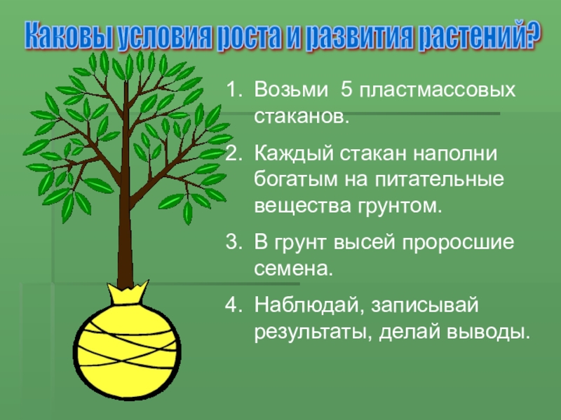 Чтобы растение росло и развивалось, необходимы: