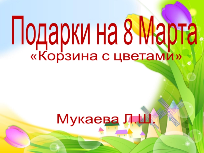 Презентация, доклад на тему подарки на 8 Марта Корзина с цветами