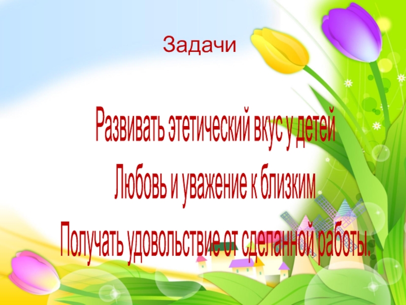 ЗадачиРазвивать этетический вкус у детейЛюбовь и уважение к близкимПолучать удовольствие от сделанной работы.